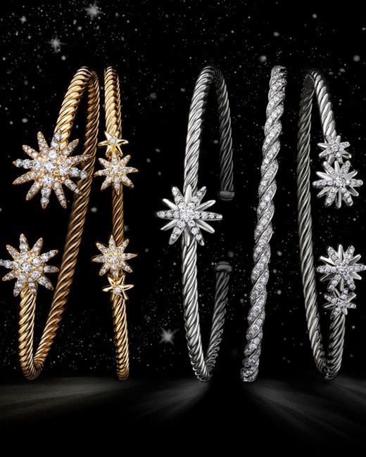 David Yurman 18k Yellow Gold Starburst Open Cable Bracelet With Diamonds In Metallic Lyst